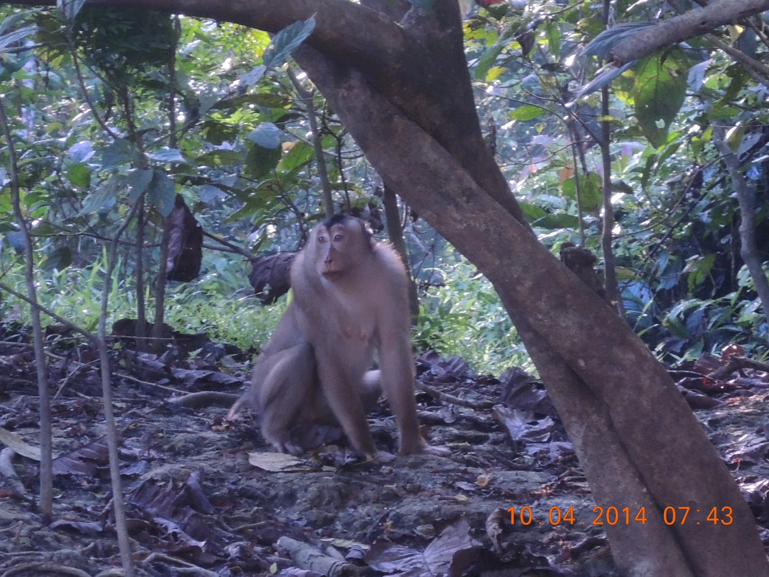This stay is all about the wildlife to be seen from the river. Three cruises are scheduled—two in the evening and one in the morning. It’s hot. Sunscreen, hats, and drinking water are strongly advised. I have an excessive love of being carried along in boats—scooting over the water, bouncing along the waves, the clean breeze whipping at my face—being on the water is conducive to clear-thinking and relaxation; it makes me feel one hundred percent content. So I’m happy to go searching through the area—but I’d be equally happy not to see a single one of the creatures that everybody else seems so keen to spot. There’s a list of what we’re looking for—orangutans, proboscis monkeys, pygmy elephants, crocodiles, monitors, macaques, snakes, and lots of birds.