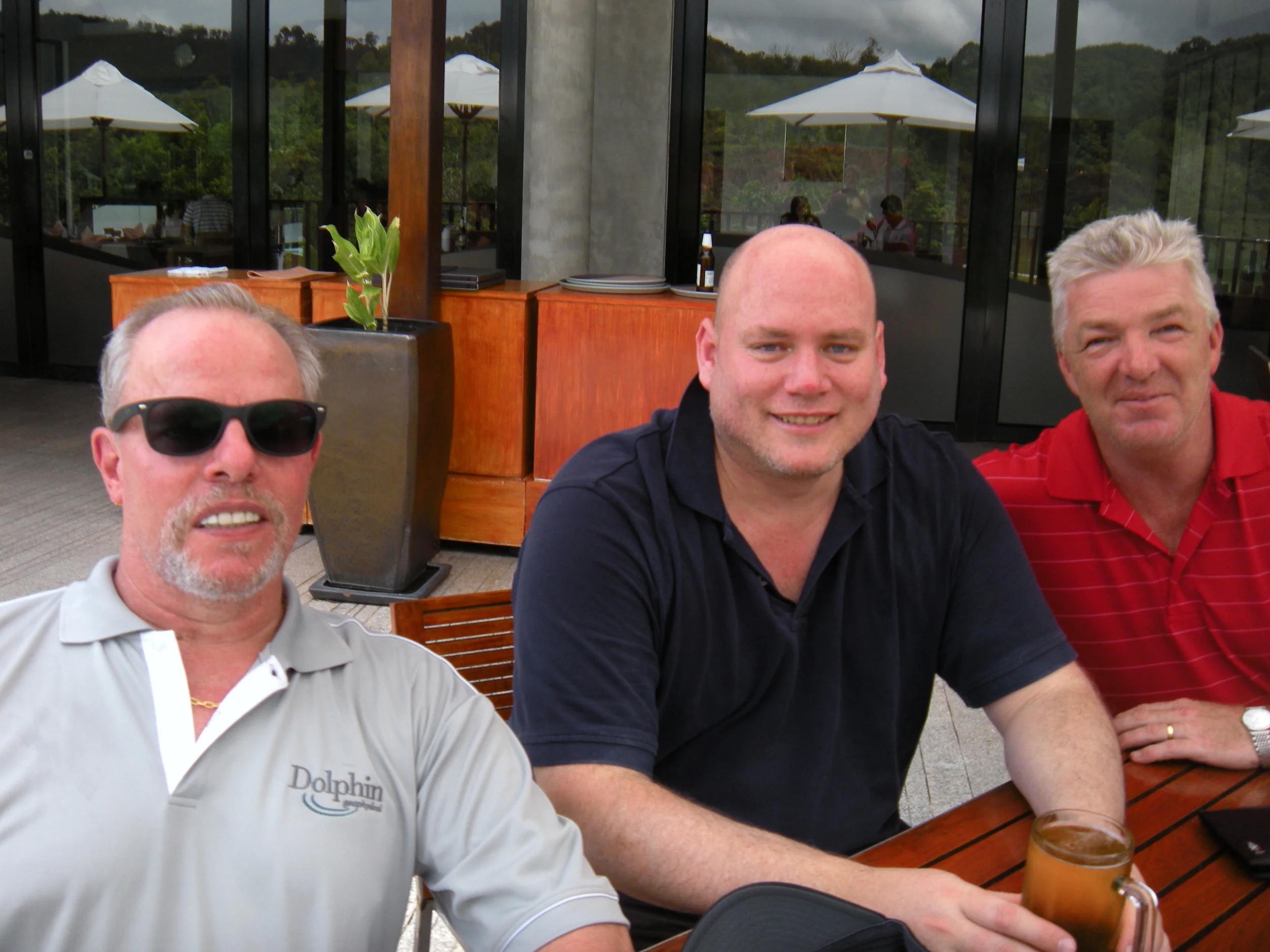 Today we form a three-ball with Derrick, from Australia, and Mark, from South Africa, two congenial men whose play is similar to David’s—in other words, inconsistent and uncontrolled, but marked by the occasional brilliant shot. After the round the four of us meet in the club bar for a beer. I ask Mark what he does for a living and he tells me that he buys restaurants in financial difficulties, turns them around, and sells them. I question the profitability of the enterprise, but he claims that it makes money and he enjoys the work. Derrick sells energy drinks. He says it’s a competitive and stressful business, which I find surprising.