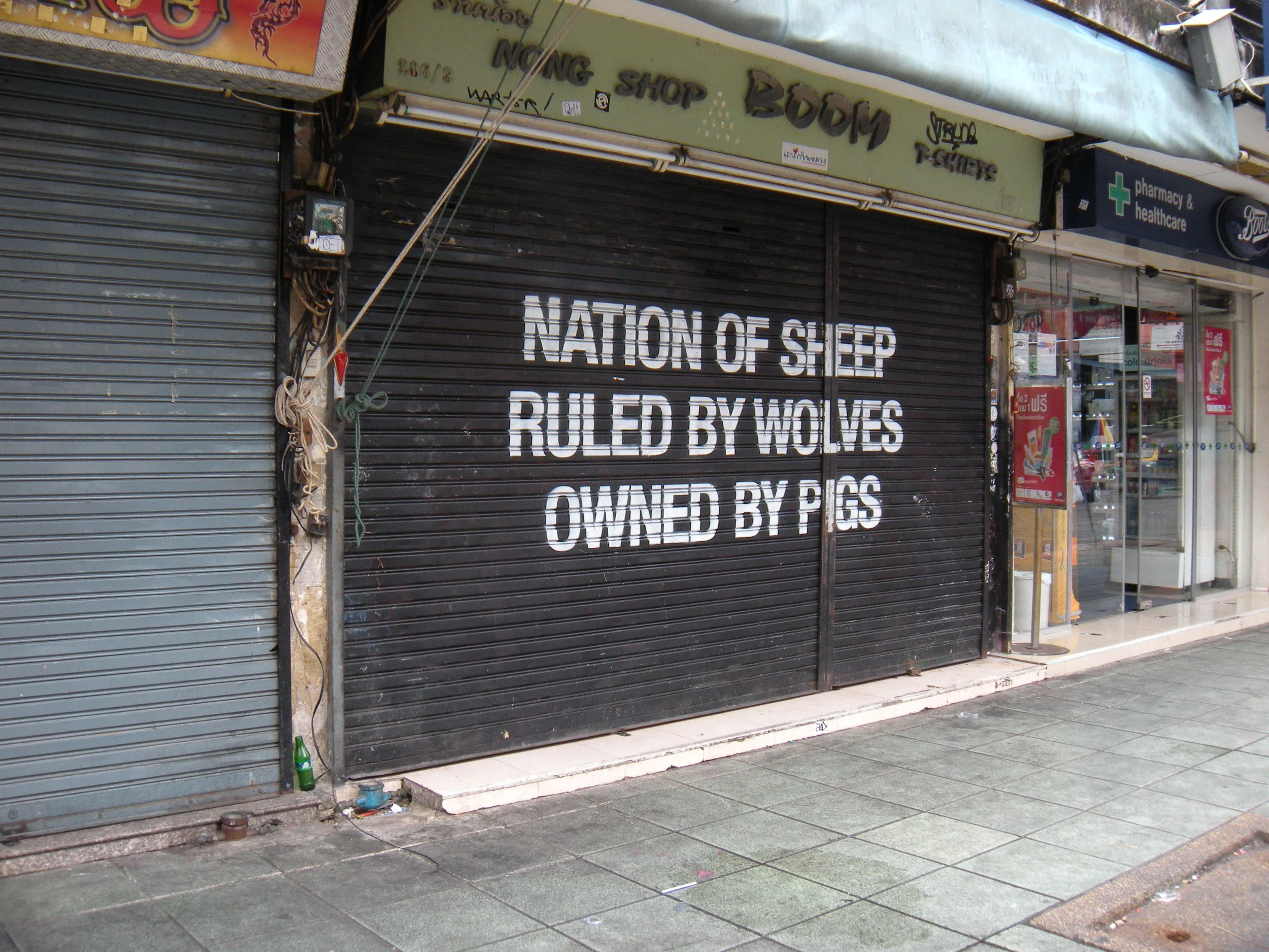 Though there's been recent unrest in Thailand, this sign on Khaosan Road was the only evidence of discontent that we saw.