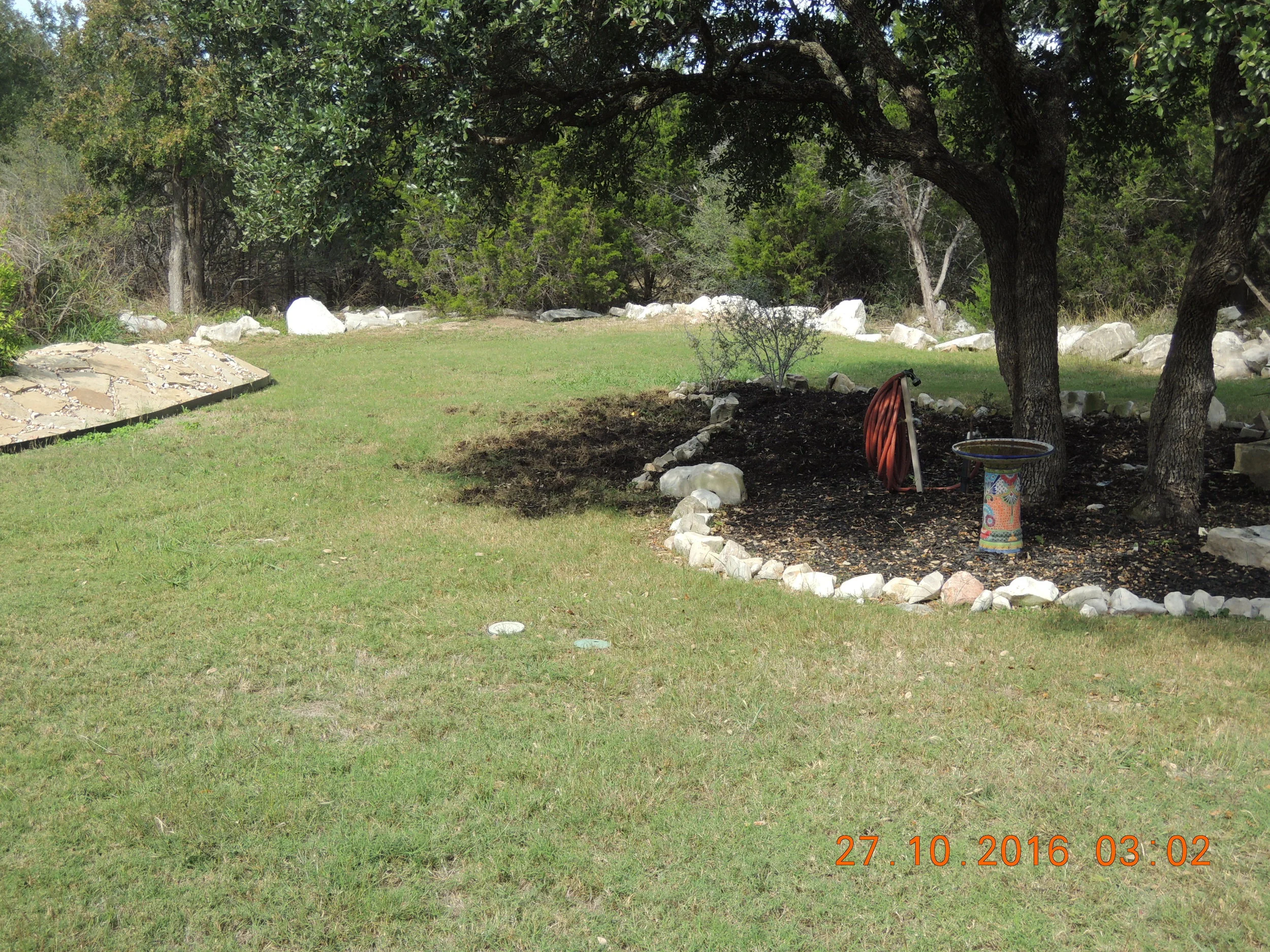 Once again a feral hog has torn up a portion of our backyard, the area between the septic system and the live oak.