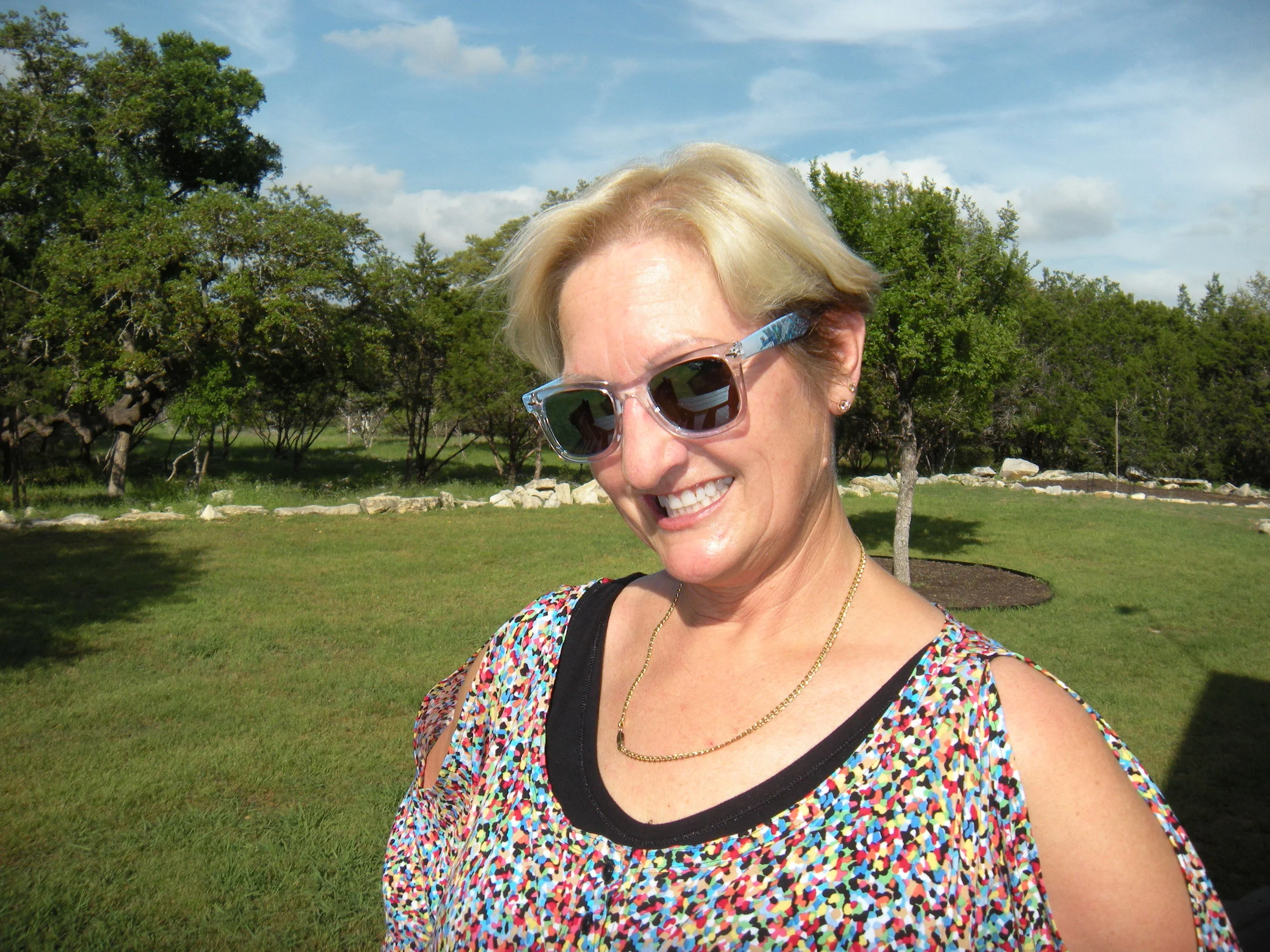 The air is warm and humid. The foliage is lush and green, and the birds are loud and cheerful. I take a deep breath of the heavy air and sigh it back out. All will be well. I’ll fix the story. Trina will get through this. Our mother will get to where she needs to be. Though I was glum when I started out, my heart feels lighter as I arrive back at the house.