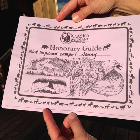 On our last night at the lodge, Elias, our guide, asked us to meet for a "ceremony." Knowing he was going to advise about tipping practices in Alaska, I teased by asking if it would be an awards ceremony. He made this especially for me.