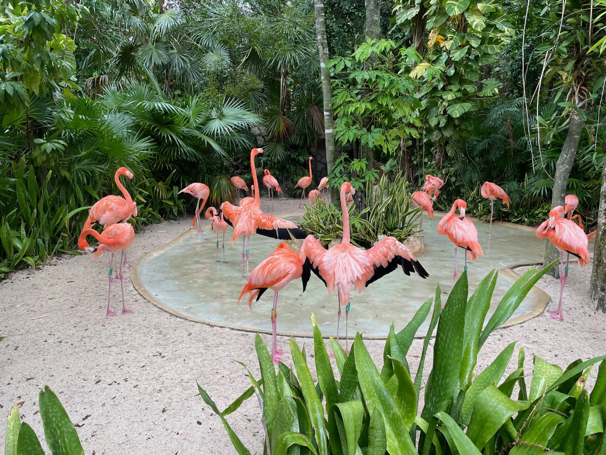 We went on an excursion, carried by bus to a huge park called Xcarret, where there were beach activities and water activities such as swimming with dolphins and sharks, though I think anybody who’d knowingly get in the water with a shark is a fool. There were a few animals to gawk at, like pumas, manatees, and sea turtles. The main attraction was a forty-five-minute swim/float in an underground river, which was indeed pleasurable. In three separate exhibitions, we inadvertently entered through the exit—the butterfly pavilion, the aviary, and the aquarium. This in no way detracted from the attractions other than us having to constantly apologize to the people coming toward us for going in the wrong direction. The huge park was efficiently run and, in a smug way, environmentally conscious. The restrooms were exceedingly clean and, while hardware isn’t usually the sort of thing someone pays attention to while peeing, I couldn’t help but notice that the hooks, locks, and hinges in the booths were remarkably substantial and expensive. So the takeaway here is that I went to a massive park and noticed bathroom fixtures.